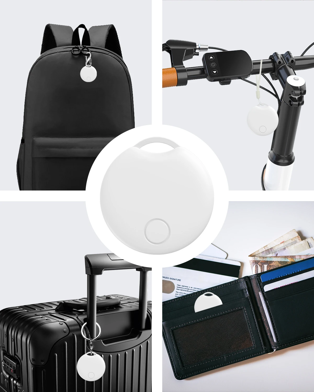 • جهاز تتبع بلوتوث بنظام تحديد المواقع :هذا المنتج عبارة عن جهاز تعقب بنظام تحديد المواقع يعمل بالبلوتوث ، مصمم لتوفير تتبع دقيق للموقع للعناصر القيمة الخاصة بك مثل الحقائب والزجاجات والبطاقات والمحافظ والدراجات والمفاتيح.