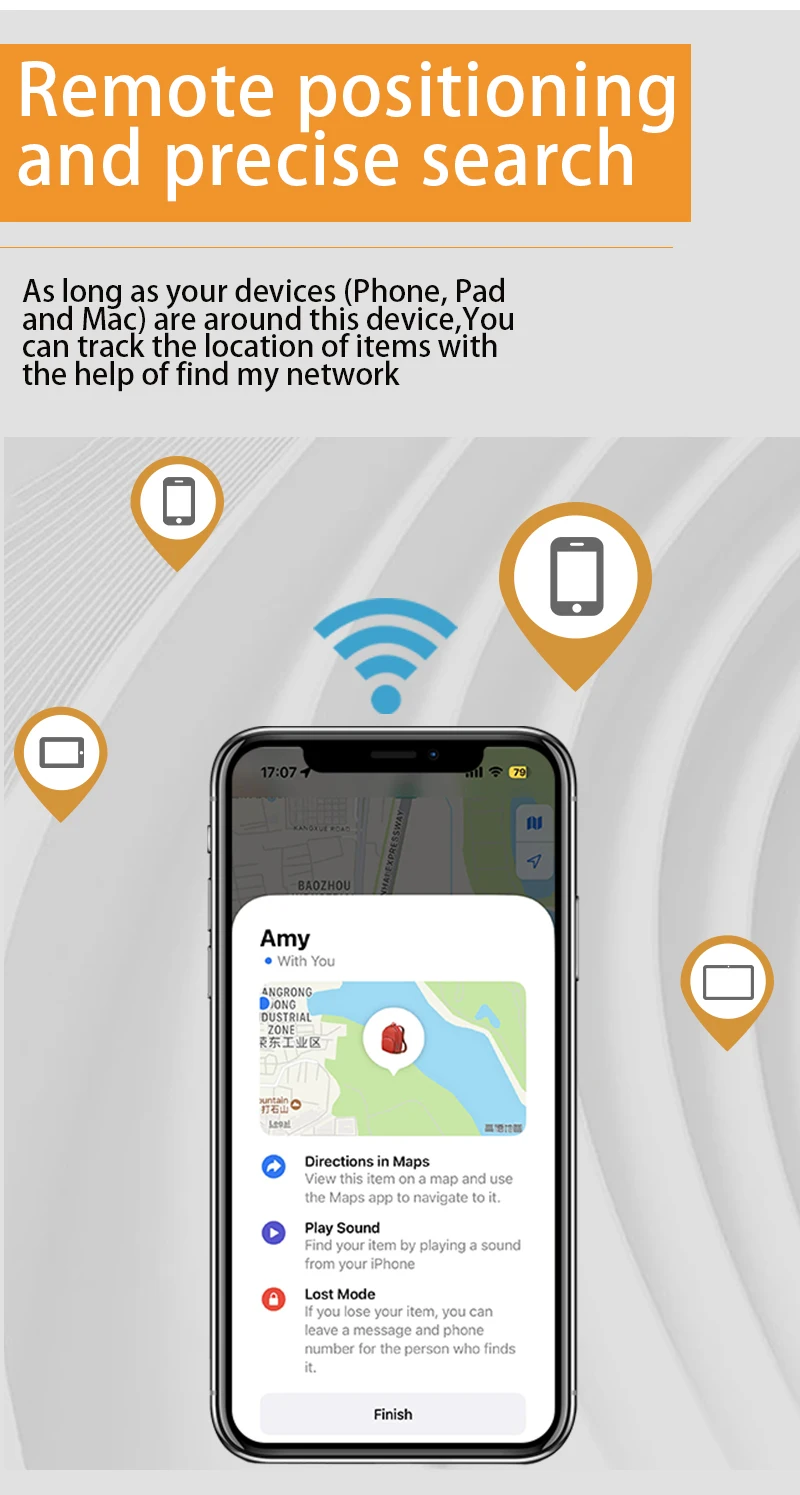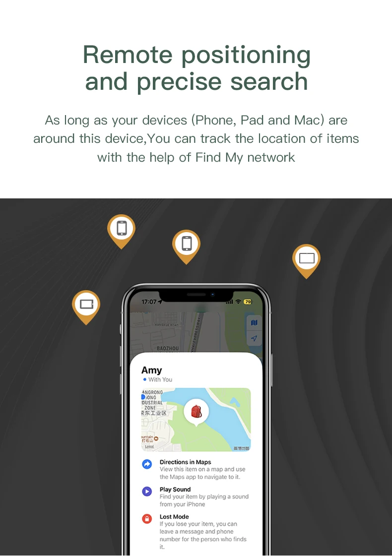 1. التتبع لمسافات طويلة: عندما تخرج العلامة الذكية من نطاق البلوتوث مع أجهزة ios الخاصة بك ، يمكن أيضًا تتبعها عبر apple للعثور على تطبيقي عندما تكون هناك أجهزة iso من أشخاص آخرين قريبين