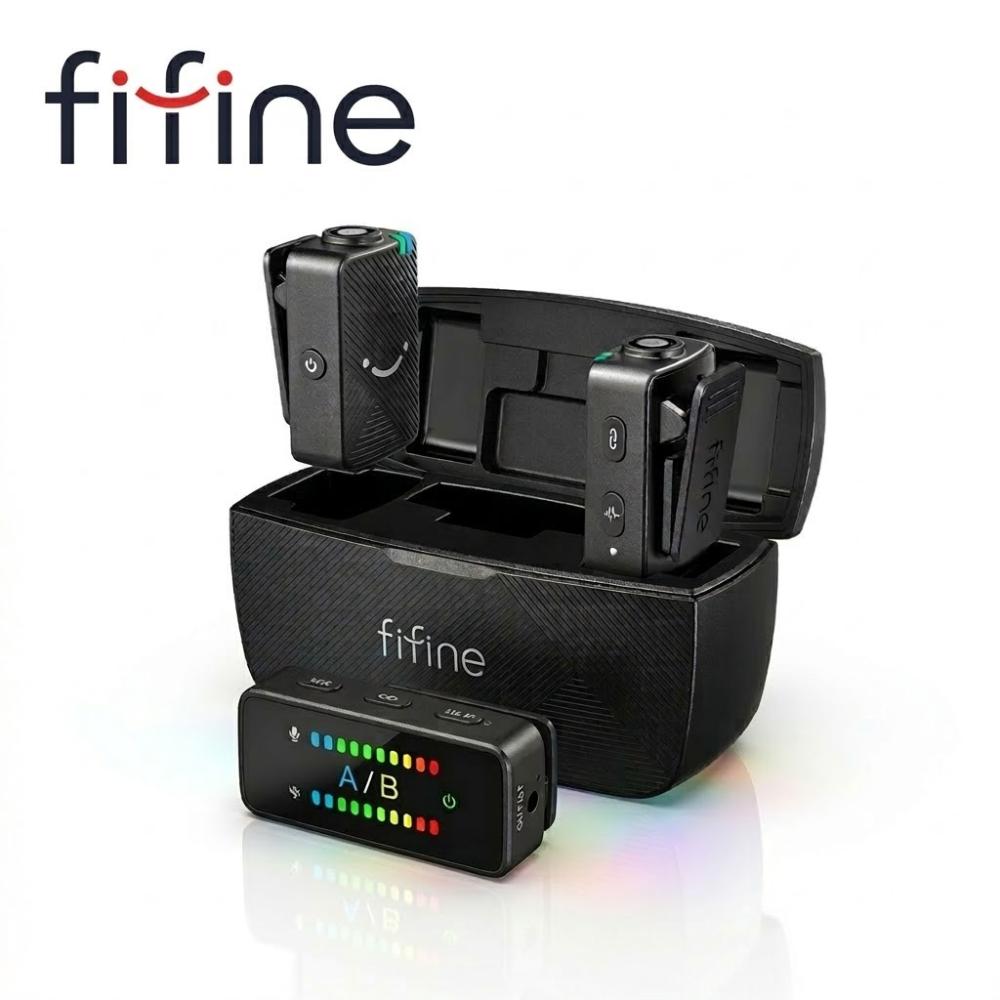 ميكروفون FIFINE M9 اللاسلكي Lavalier، عبوتان من نظام ميكروفون لاسلكي لتسجيل مدونة الفيديو، مناسب لهاتف iPhone/Android/الكاميرا/الكمبيوتر المحمول